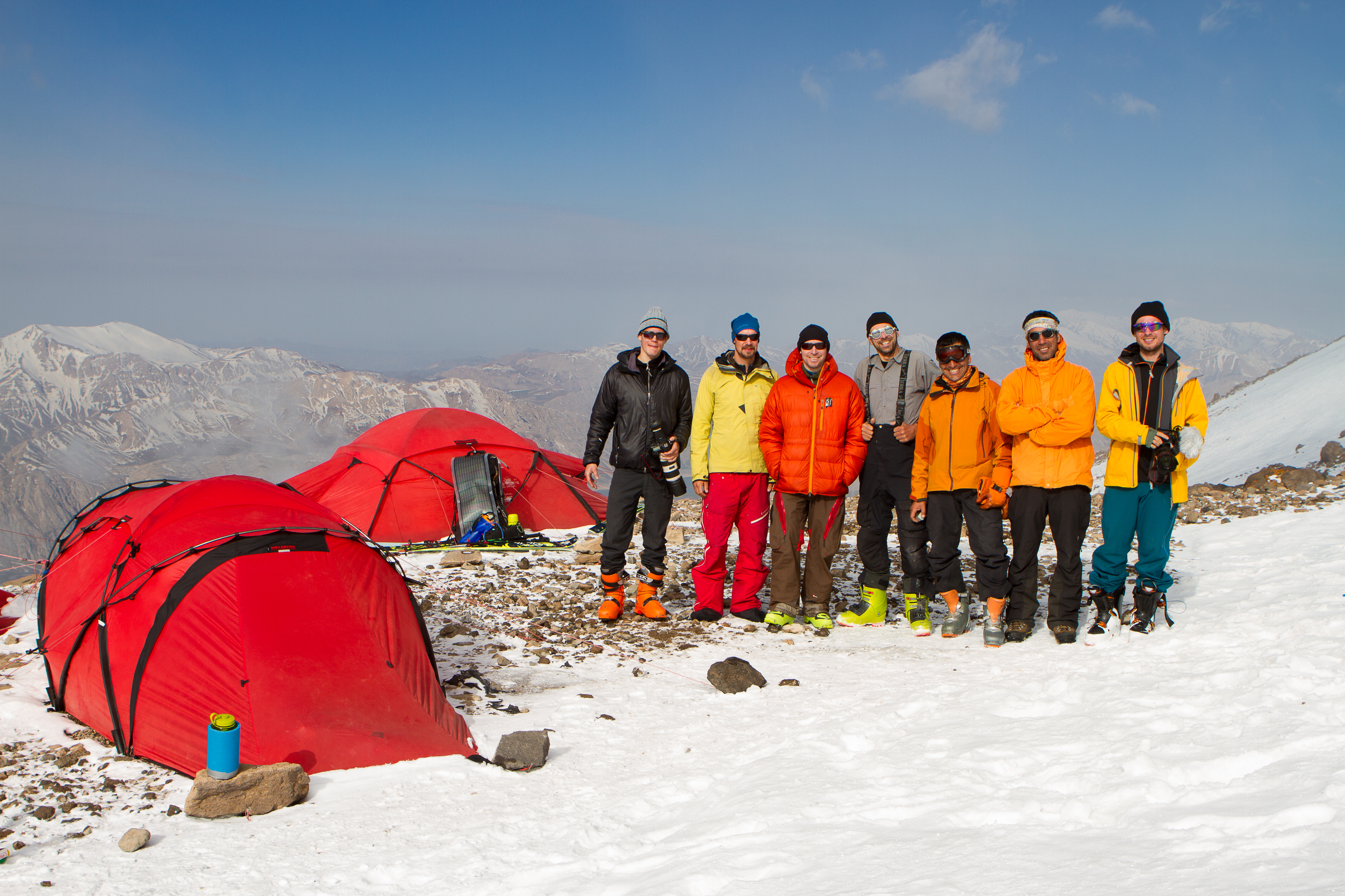 Description: The whole team at the high camp on Damavand, May 2013. From left to right: Johannes Widerström, Stefan Pettersson, Lars Larsson, Adrian Nordenborg, Mehrdad Ghazvinian, Babak Ghazvinian, Daniel Warberg.