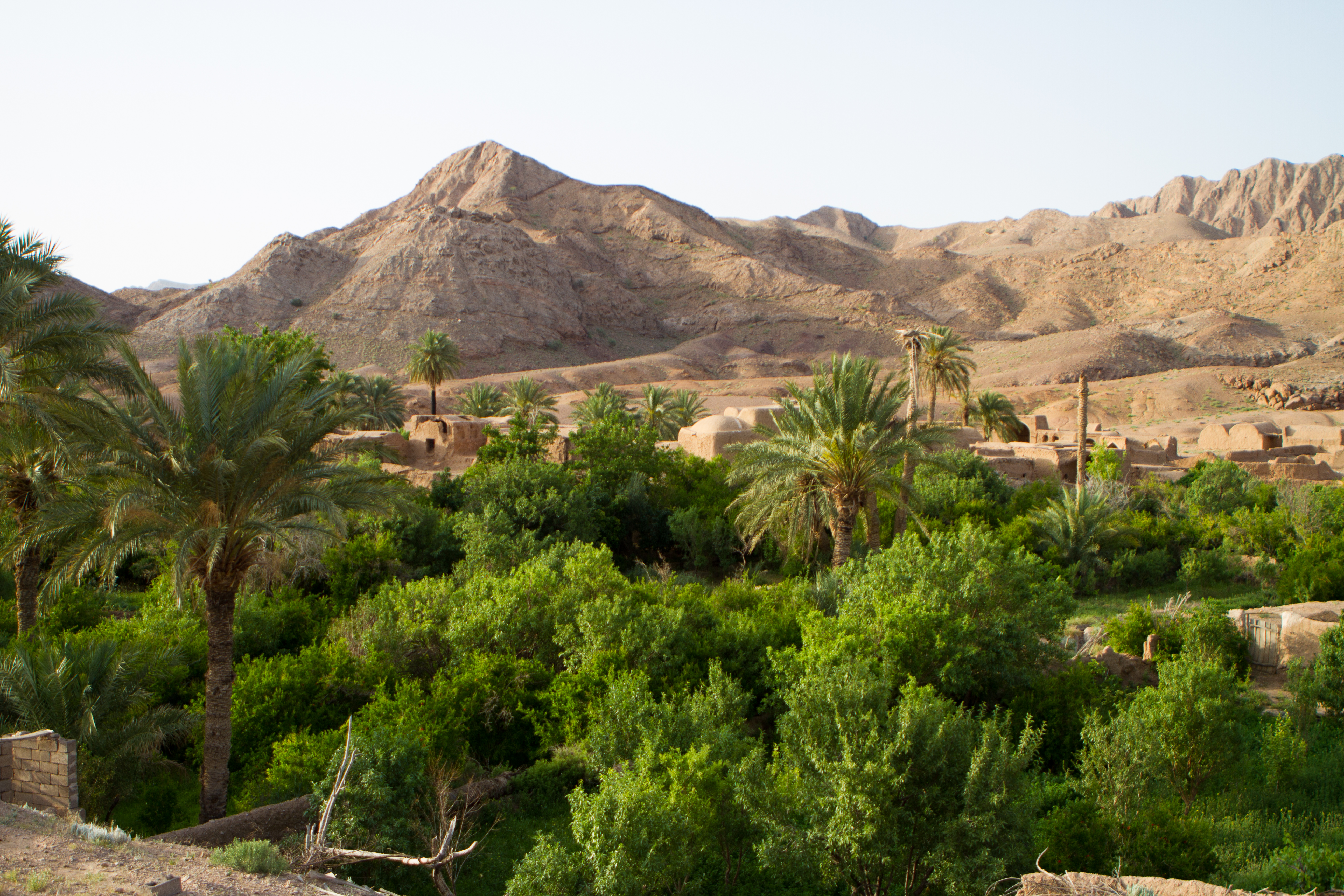 Description: The oasis Arusun on the southern shore of the great Dasht-e Kavir.