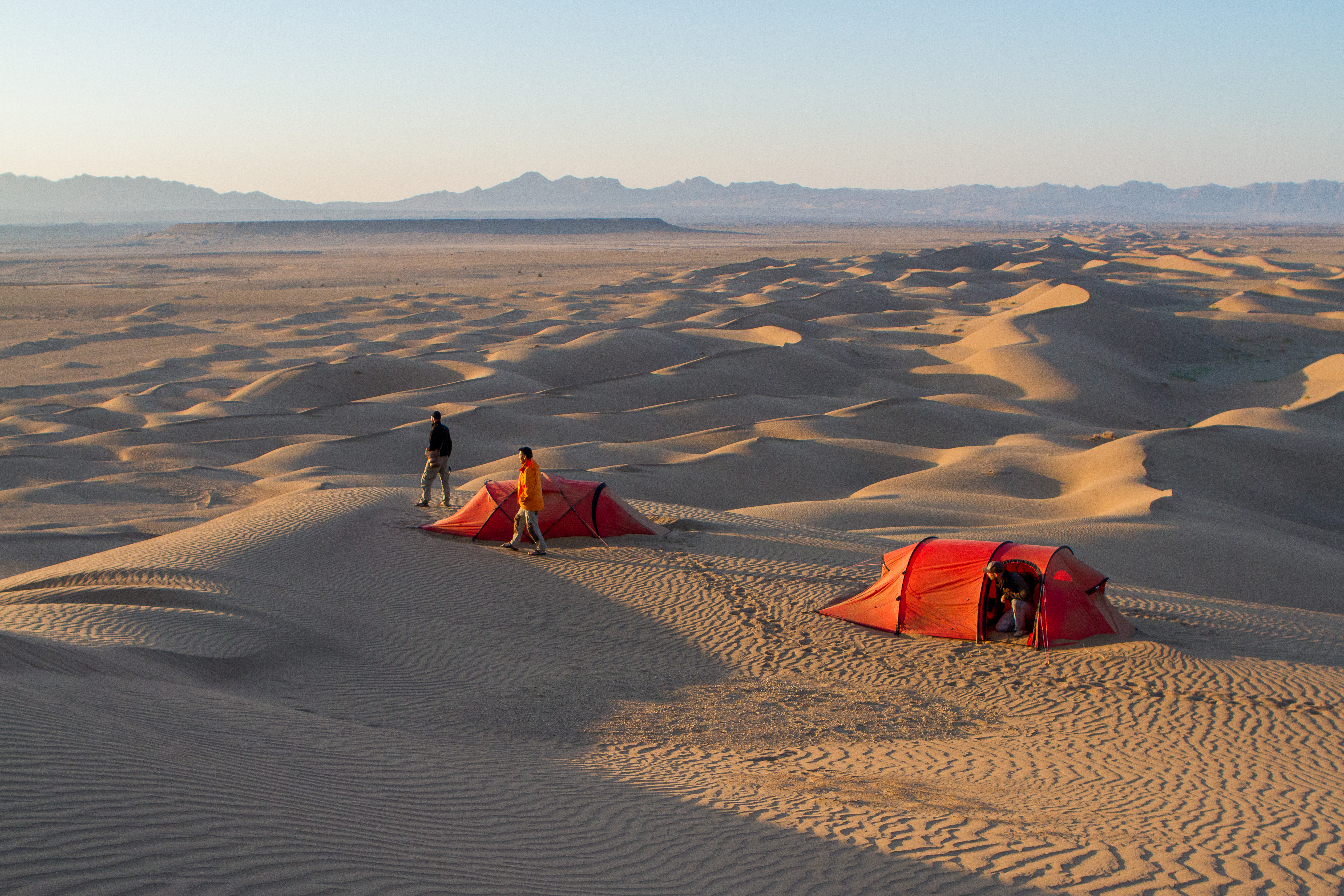 Description: The team camping in the sand dunes outside Mesr, west of Arusun. This sand desert is located south of the great Kavir.